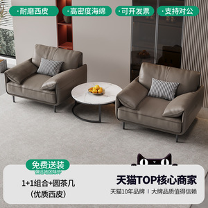 接待三件套-圆茶几组合【头层牛皮 高定款】 包安装