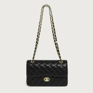 小香风cf鱼子酱DIY包包女百搭单肩包菱格链条荔枝纹翻盖小方包