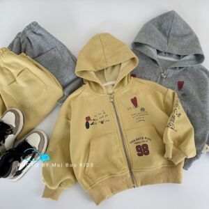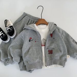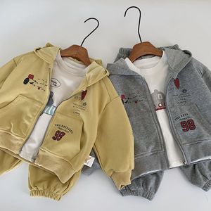 麦宝儿童套装2025春秋新款韩版男女童连帽开衫+运动裤两件套批发