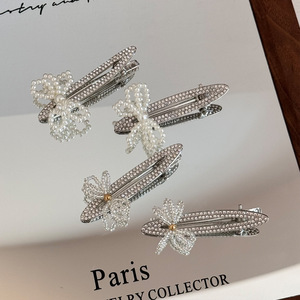 精致闪钻鸭嘴夹洋气串珠蝴蝶结发夹轻奢高级感侧边夹头饰2025新款