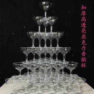 加厚亚克力香槟杯塑料高脚杯庆典开业酒吧酒杯婚庆道具香槟塔杯子