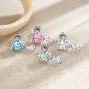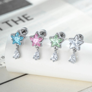 亨森新款冷淡风星星锆石水滴吊坠清冷感小众软骨穿刺耳骨钉