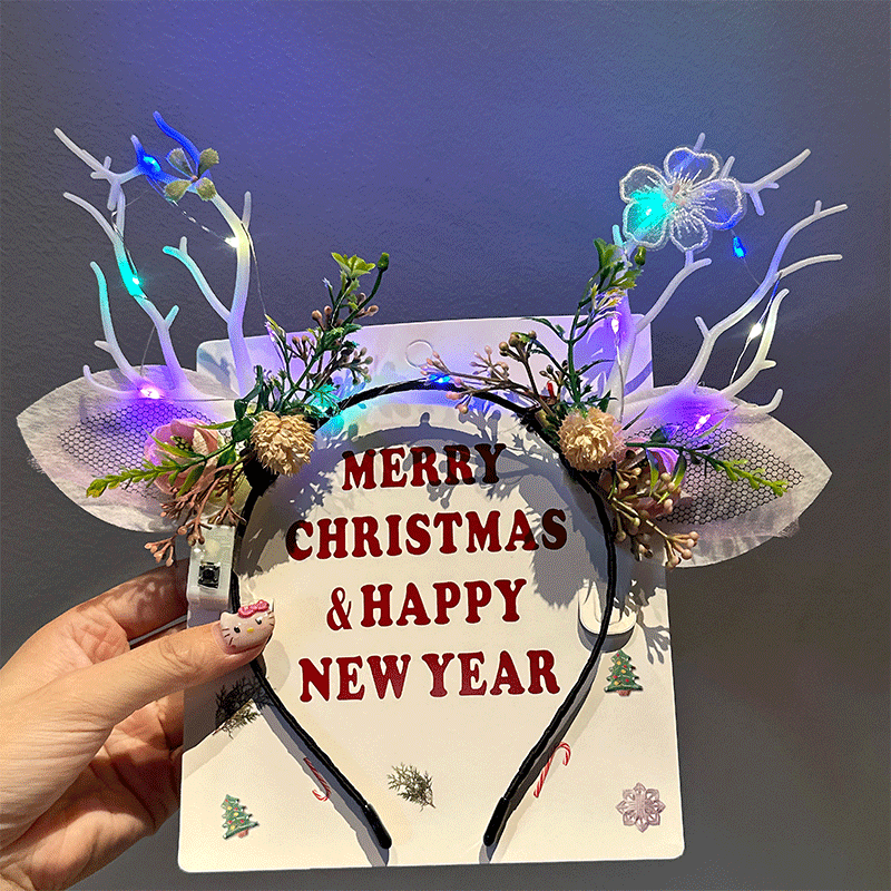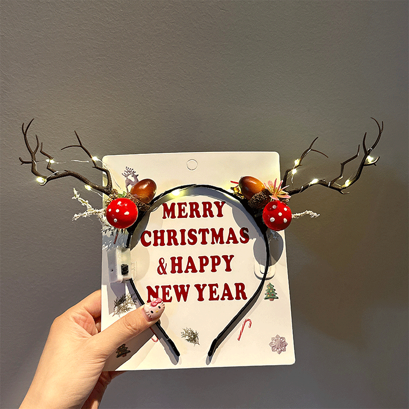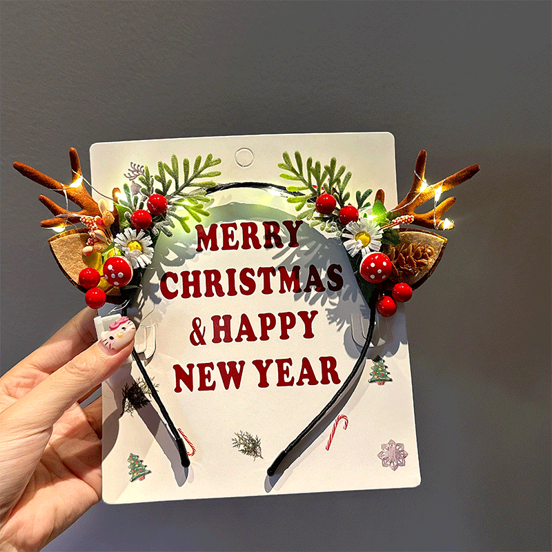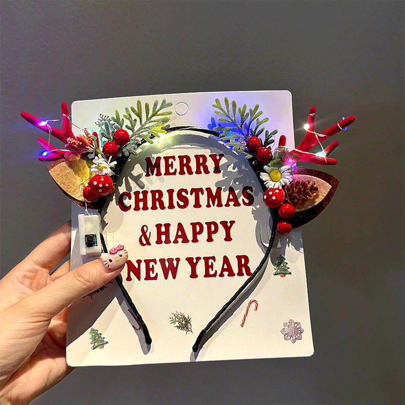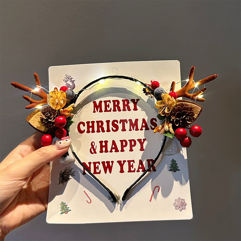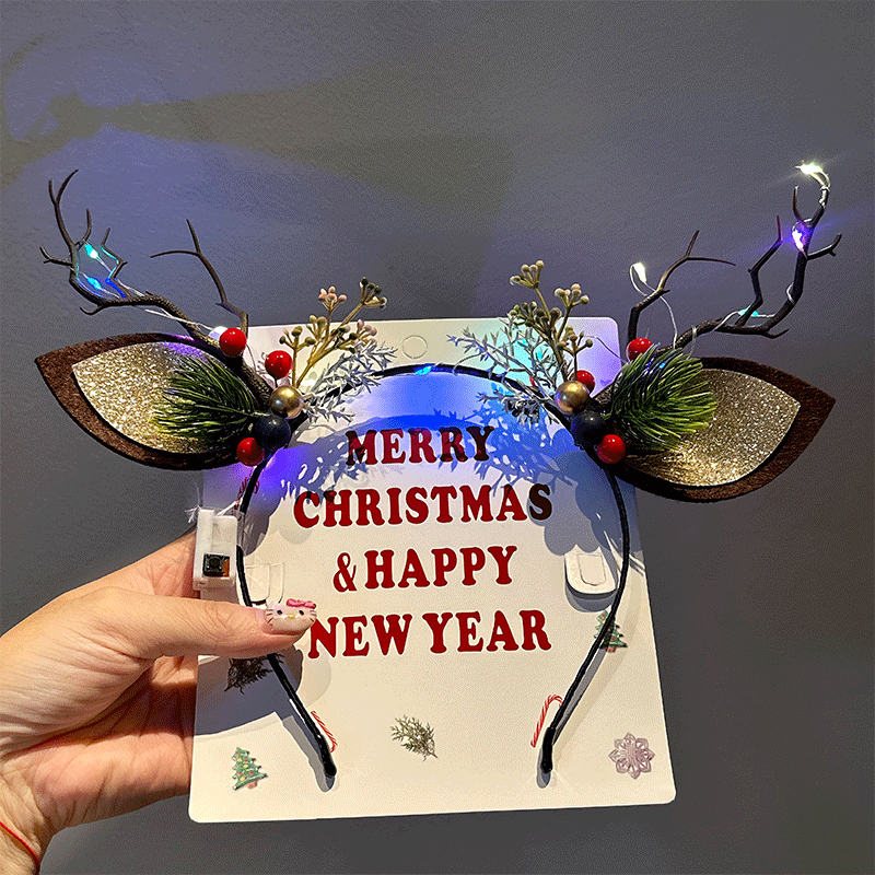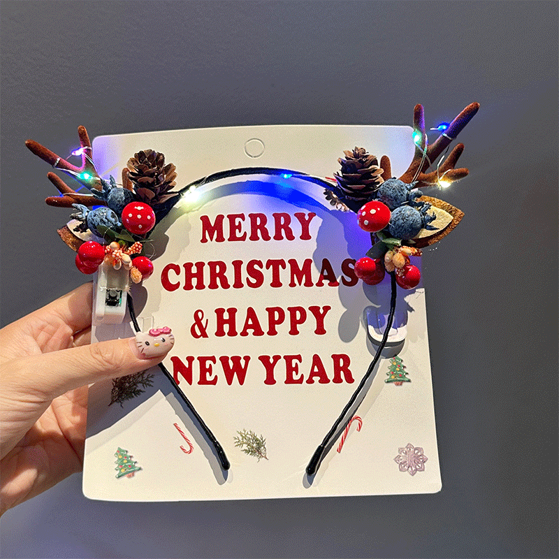 节日红鹿角发光发箍女儿童可爱发卡头饰森系麋鹿头箍成人闪光发饰