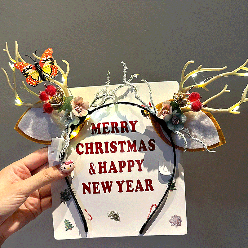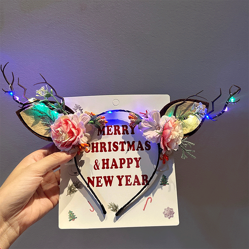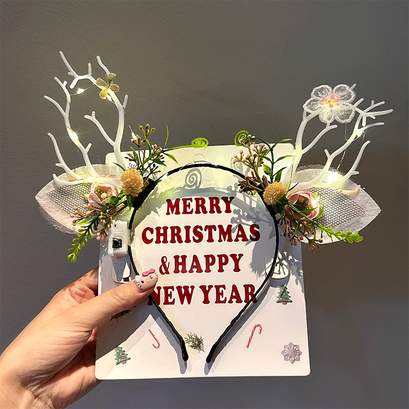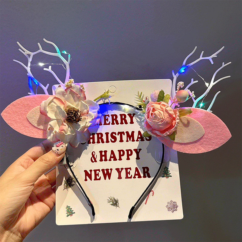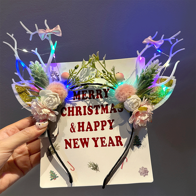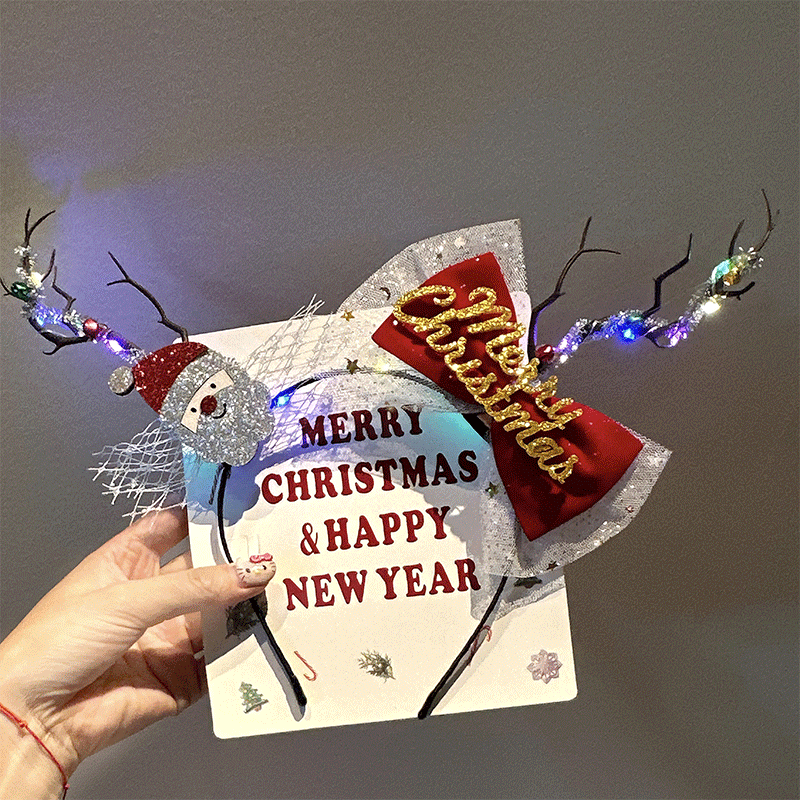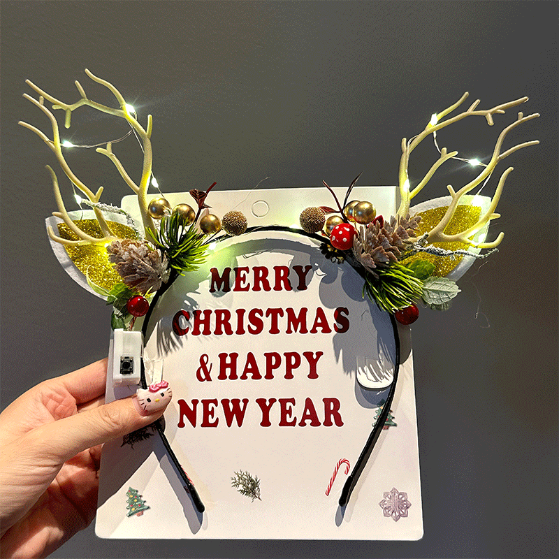 节日红鹿角发光发箍女儿童可爱发卡头饰森系麋鹿头箍成人闪光发饰