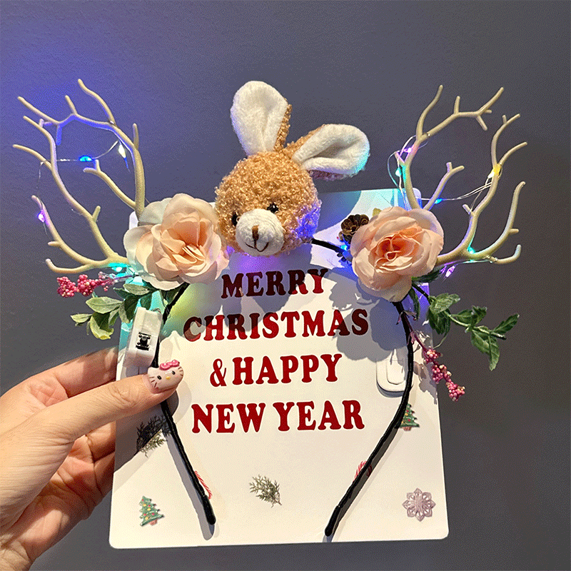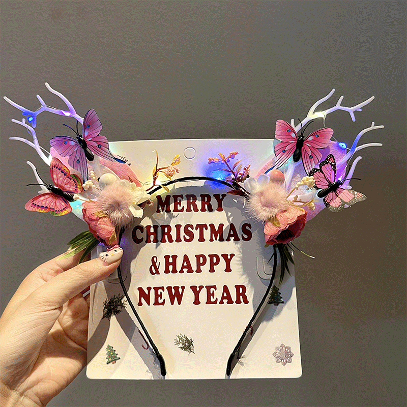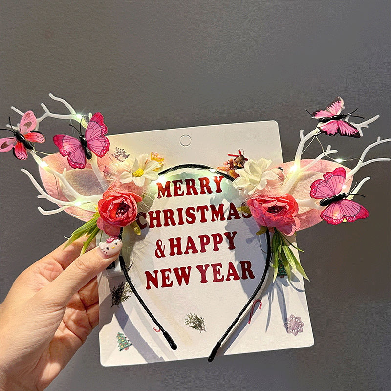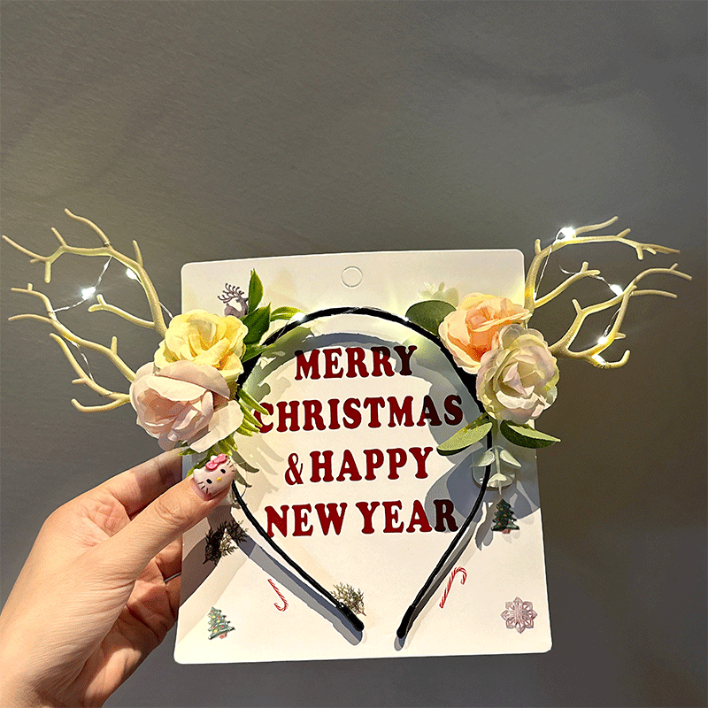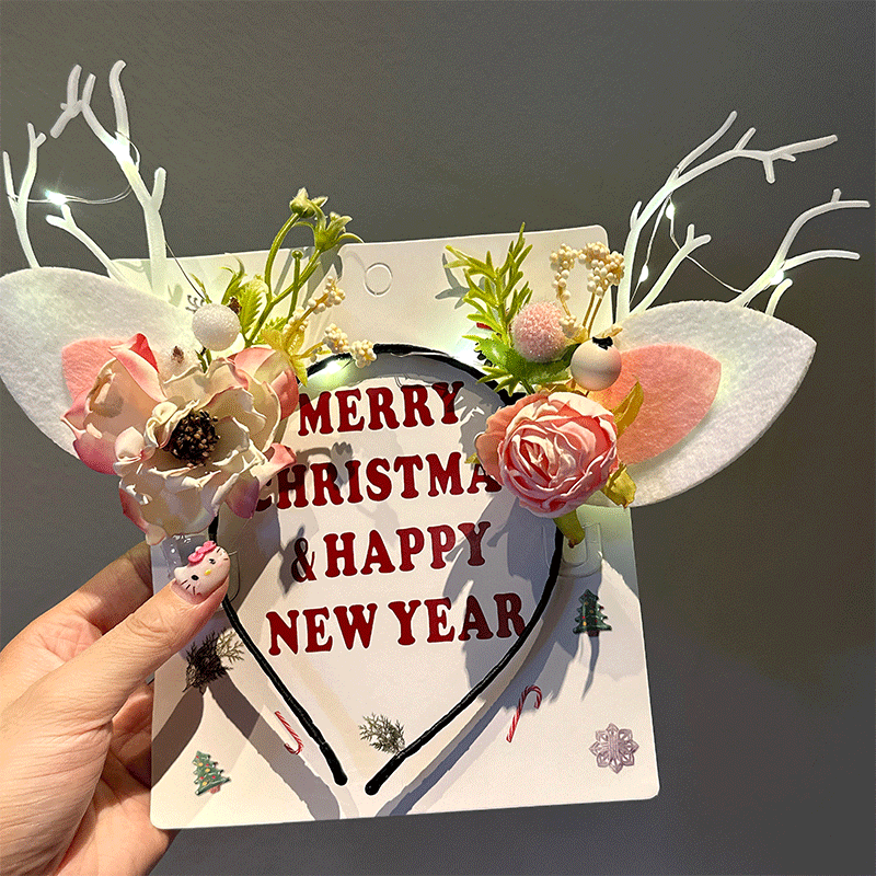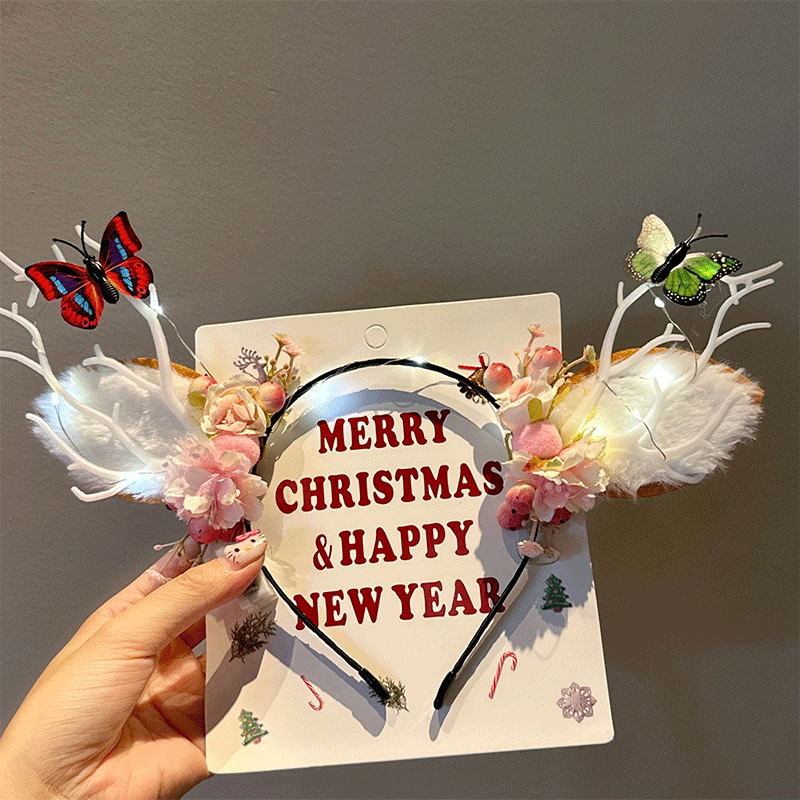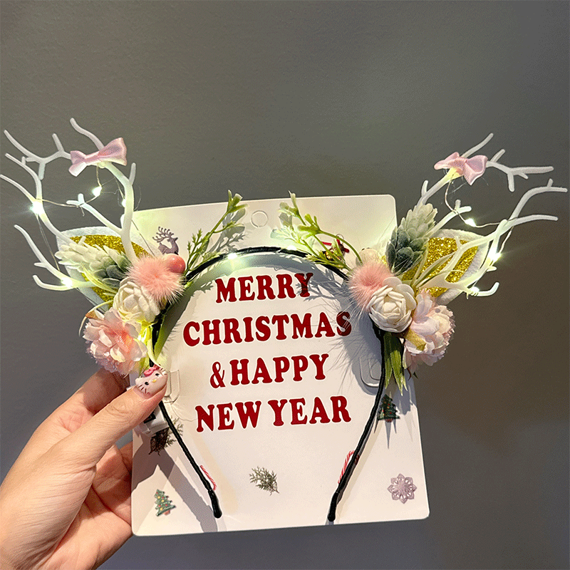 节日红鹿角发光发箍女儿童可爱发卡头饰森系麋鹿头箍成人闪光发饰