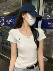 半开领百搭刺绣设计感短袖T恤女夏季2025新款休闲显瘦套头上衣ins
