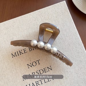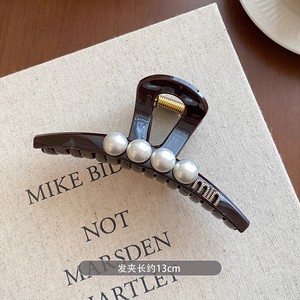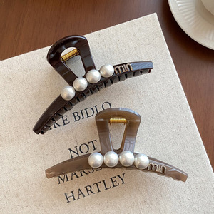 网红气质珍珠抓夹女大号简约高级感发夹后脑勺盘发头饰鲨鱼夹发卡