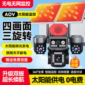 AOV太阳能监控四画面360度无死角手机远程无电无网室外夜视4G摄像