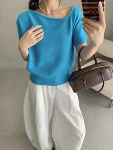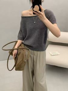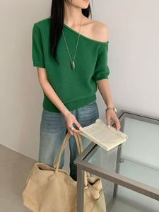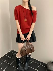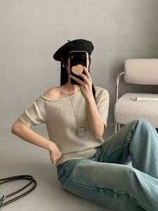 纯欲辣妹斜肩别致短袖针织衫女夏季2025韩系chic设计感一字肩上衣