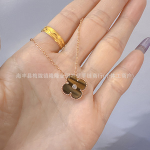 高版本四叶草项链CNC单花钻项链抖音直播热卖厂家不掉色爆款项链