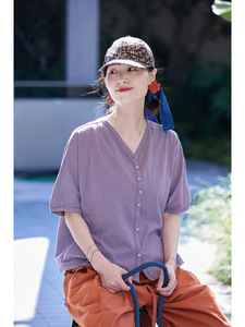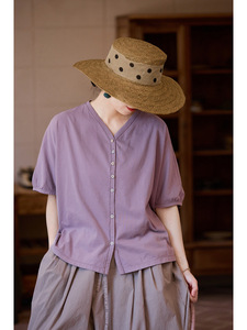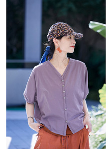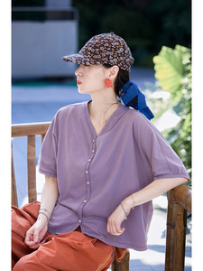新品文艺复古雾紫亲和原创软糯柔感宽松显瘦休闲短袖针织开衫
