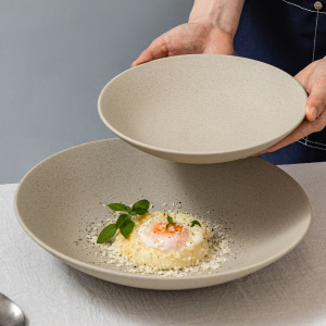 陶瓷粗陶盘子家用菜盘西餐盘高级感早餐甜品点心圆盘深盘意面汤盘