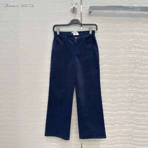 南油2025早秋新款 复古休闲慵懒随性 细条灯芯绒中高腰直筒裤批发