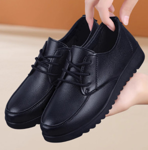 肯德基防滑工作鞋女皮鞋防水防油黑色厨房鞋久站不累脚上班厨师鞋
