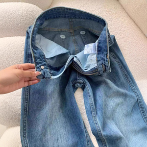 蓝色复古水洗窄版直筒牛仔裤女2025秋季新款高腰宽松显瘦阔腿长裤