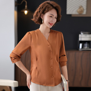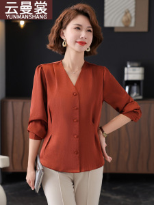 妈妈装秋装新款气质减龄显瘦长袖衬衣洋气百搭小衫中老年纯色上衣