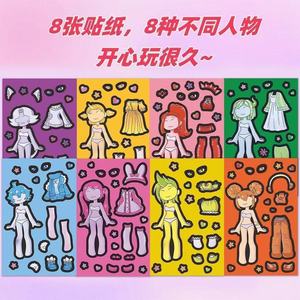 新款山海经vs节奏盒子换装贴纸labubu爆款女孩手工益智卡通贴画