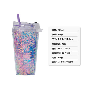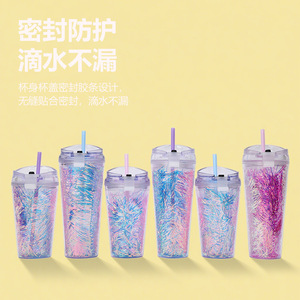 跨境创意毛条双层吸管杯 翻盖简约纯色直饮水杯 厂家直供塑料杯子