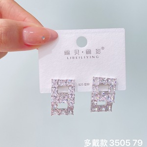 丽银丽贝丽影新款欧美时尚超闪锆石耳钉气质名媛风高级感轻奢耳饰