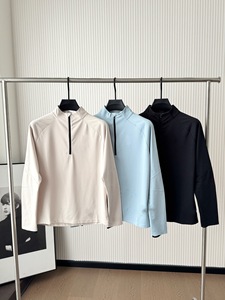 081206 秋季新款男士高弹垂感透气户外小立领半拉链长袖T恤