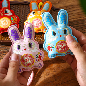 古风刺绣福兔团圆香包挂件中秋节保平安护身福袋车载礼品香囊挂饰