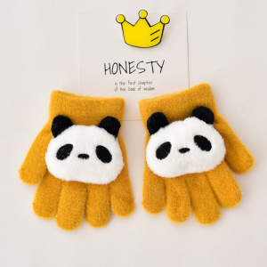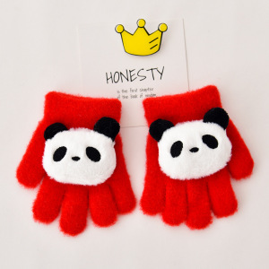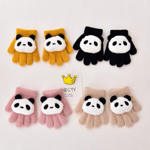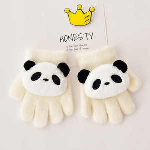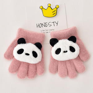 儿童手套秋冬季男女宝宝卡通小熊猫可爱指套婴幼儿保暖五指手套新