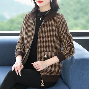 妈妈秋装千鸟格呢子外套女洋气新款中老年女春秋冬季时尚上衣开衫