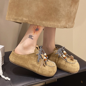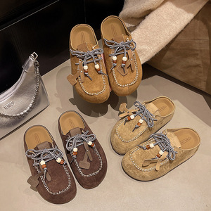 谷韵丨厚底勃肯鞋半拖女2025年夏秋季日系包头系带增高包头拖鞋女