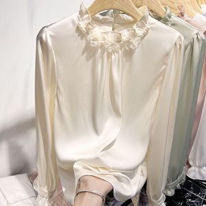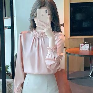 2025新款长袖内搭雪纺衫领春秋季女衬衫别致打底衫法式显瘦