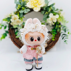 一二三代钥匙扣Labubu衣服挂件拉布布娃衣淡雅中国风套装可爱仙