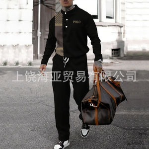 2025跨境新品欧美秋冬潮流款男士套装帅气时尚休闲运动男装一整套