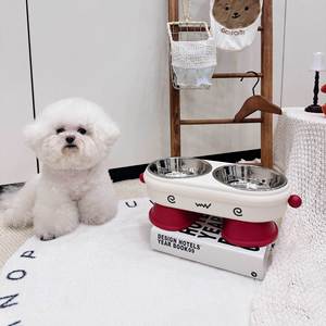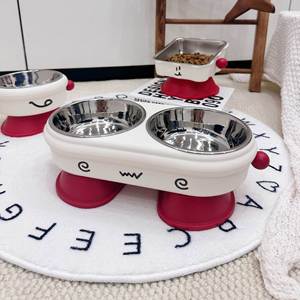 高脚宠物碗不锈钢防打翻护颈宠物饮水喂食二合一猫咪饭盆狗狗食具
