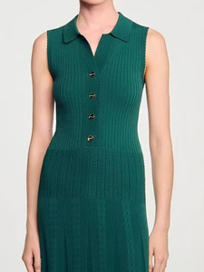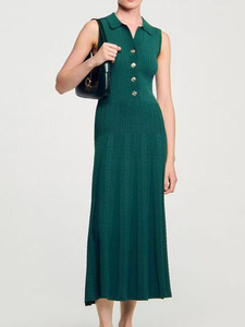 S家夏季新款女装2025法式气质镂空优雅时尚无袖v领针织连衣裙长裙