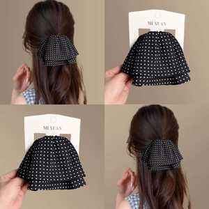 波点三层网纱飘逸灵动蝴蝶结马尾夹 半扎发后脑勺鲨鱼夹抓夹发饰