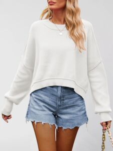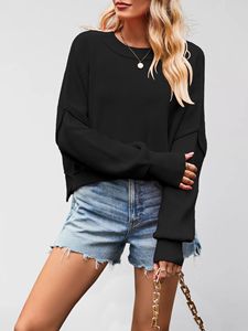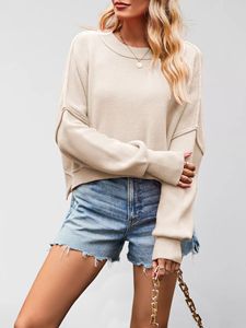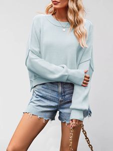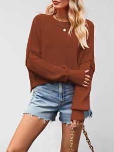 新款2025外贸秋冬亚马逊欧美女装纯色时尚圆领针织衫宽松套头毛衣
