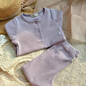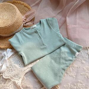 高弹柔软儿童套装波点满印秋衣秋裤两件套家居服套装0176079
