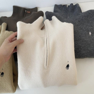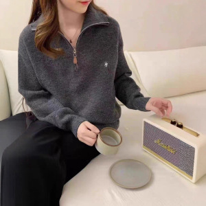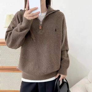 韩系小众刺绣设计!2025秋季新款半拉链翻领宽松百搭慵懒套头毛衣