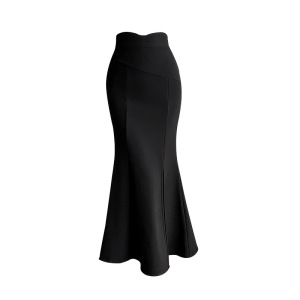 开叉鱼尾裙女春秋高腰半身裙2025新款字裙包臀裙中长款裙子长裙