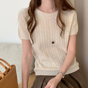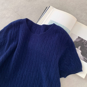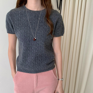 纯羊毛女式打底衫秋冬新款圆领三分袖内搭早秋新款休闲风套头短袖