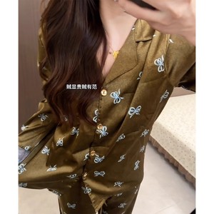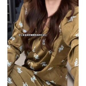 轻奢ins满印蝴蝶结印花睡衣女秋季云朵棉长袖长裤家居服两件套