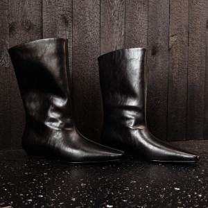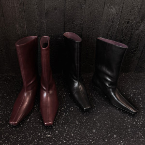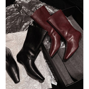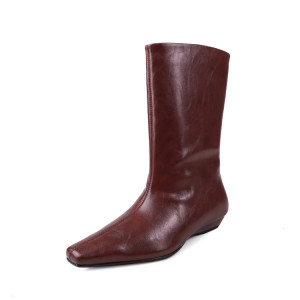 牛皮中筒靴女宽筒靴秋冬新品真皮骑士靴低跟套筒舒适方头中筒靴女