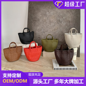 2025款头层牛皮手工编织包菜篮子包女高级感小众手提包遛狗手拎包