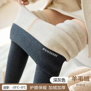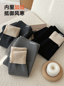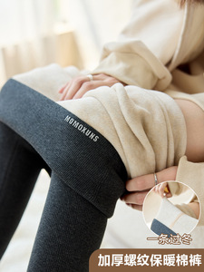 竖条螺纹纯棉外穿打底裤女秋冬新款高腰羊羔绒加绒加厚显瘦小脚裤