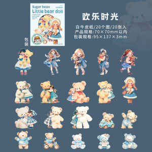 美好的一天贴纸 糖豆与小熊玩偶系列 人物主题手账DIY装饰贴20张