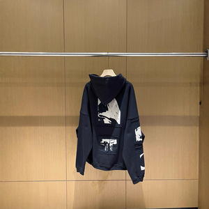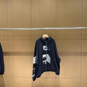 ERD麦当娜舞女插画拼接贴布水洗做旧男女潮牌宽松拉链连帽衫卫衣