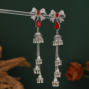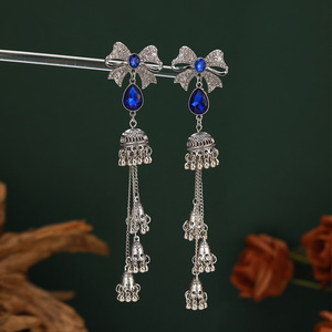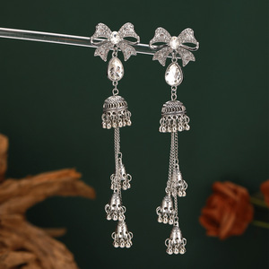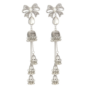 跨境欧美蝴蝶结镶钻流苏风铃耳环女 复古民族风水滴优雅气质耳饰
