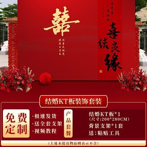 农村院子中式婚礼布置囍字kt板装饰结婚户外场景婚庆留影背景