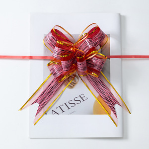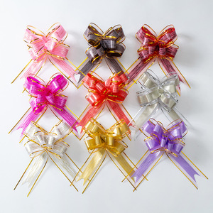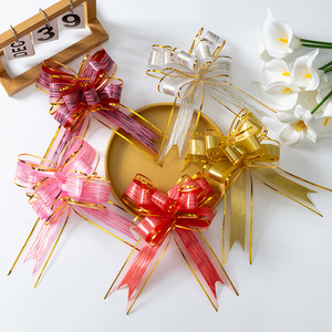 手拉花彩带金边树皮纹雪纱蝴蝶结婚婚房车楼梯装饰圣诞礼品包装