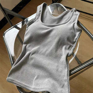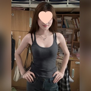 灰色吊带带胸垫工字小背心女夏外穿上衣宽肩带无袖内搭宽松不露背