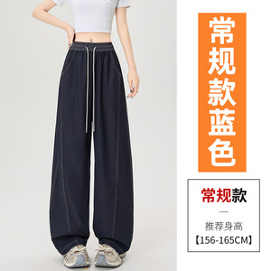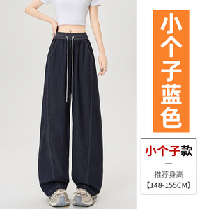 复古深蓝色天丝牛仔裤女夏季薄款宽松垂感阔腿裤拖地直筒弯刀裤子